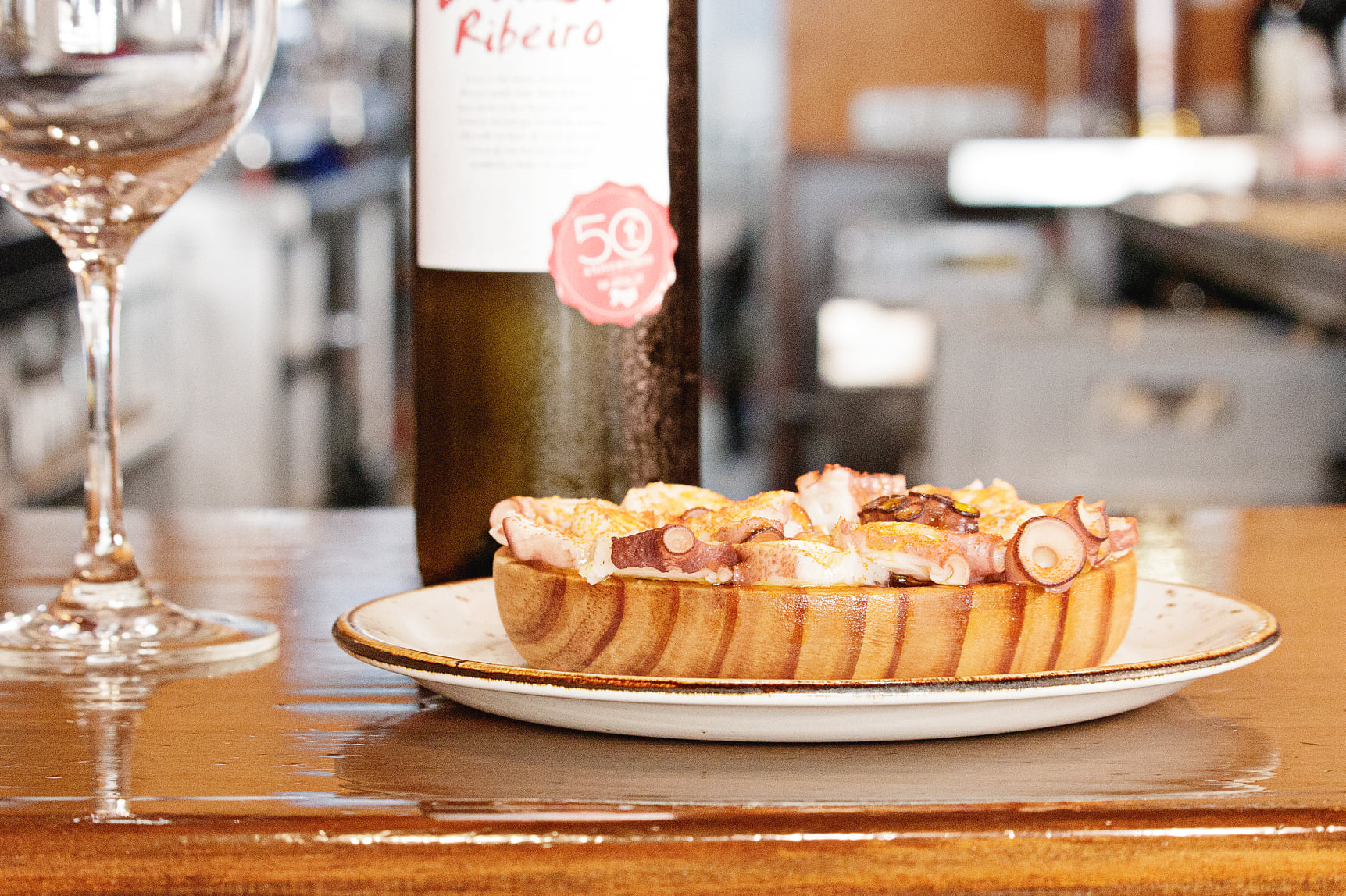 Pulpo a la feira; empanadas caseras (atún o carne); caldo gallego; lacón con grelos; zamburiñas plancha; mejillones a la marinera; rabo de toro; solomillo de ternera
