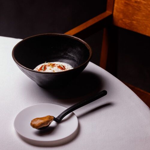 E staba claro que la propuesta de Gofio merecía un cambio de aires, un espacio más amplio donde dar rienda suelta a la "canariedad" gastronómica, y después de lo visto… ¡parece que han acertado!El nuevo local, ubicado en una calle paralela a la siempre concurrida y dinámica Gran Vía, presenta dos plantas, con una a nivel de calle donde se ve un reservado y la sala principal en el sótano, como si fuera un moderno bistró con la cocina abierta. El chef tinerfeño al frente, Safe Cruz, retoma los sabores tradicionales canarios desde la creatividad, a través de tres menús degustación (Gofio Express, Canariedad Máxima y Canariedad Máxima Plus) que consiguen trasladar la esencia del archipiélago volcánico con pequeños bocados (como el Salpicón de atún rojo, mojo de cilantro y causa con pimienta palmera; la Gamba blanca con mojo hervido de sus cabezas y mojo de cardamomo; el Salmonete asado con jugo de cazuela de sus espinas y aceite de cebollino...), todos muy elaborados y repletos de sabor.