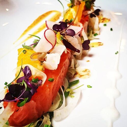 � �Apartado del bullicio turístico! El comedor, completamente acristalado, se complementa con una atractiva terraza a la sombra de una morera. Cocina actual y menús de mercado.