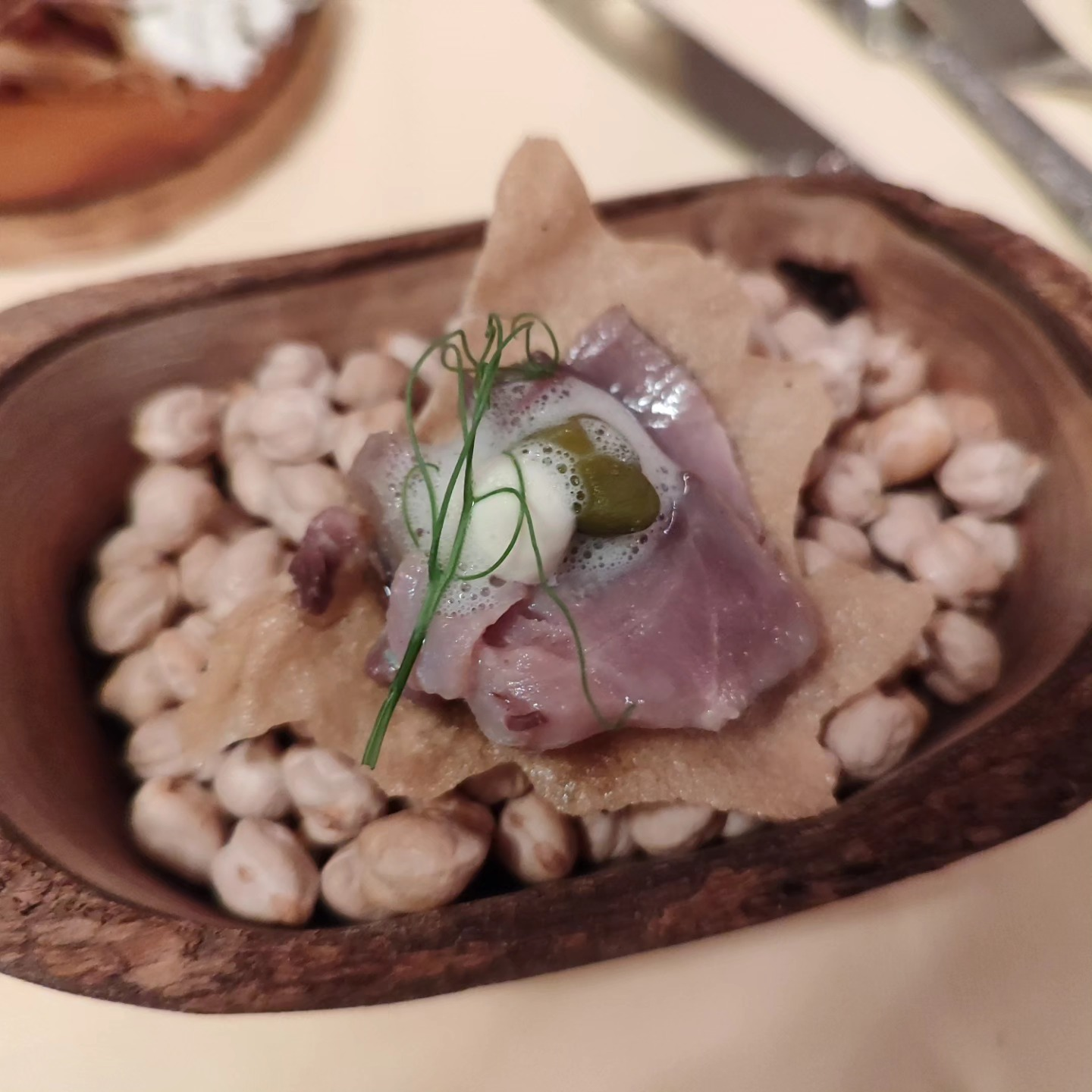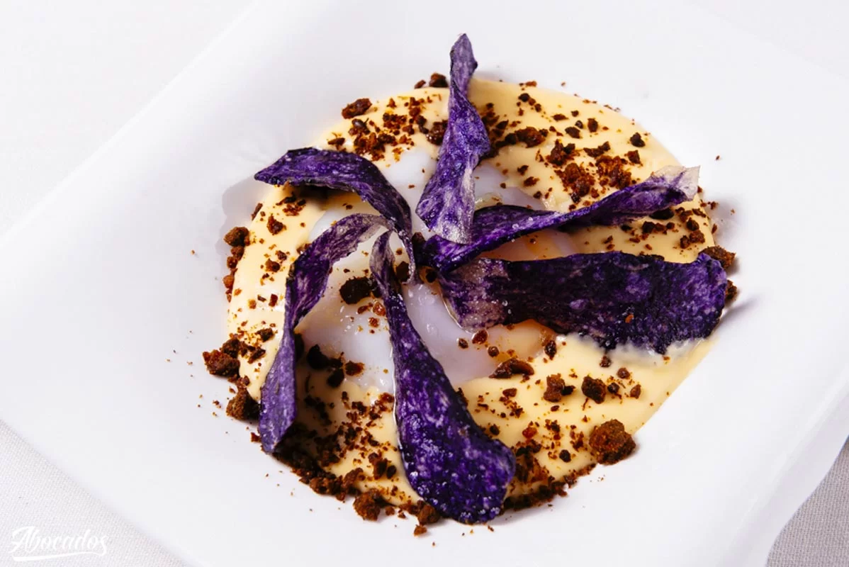 Esparrago blanco de Tudela con ajo blanco de cacahuete y trufaMedia Ración: 10,00 EUR Ración: 19,98 EUR