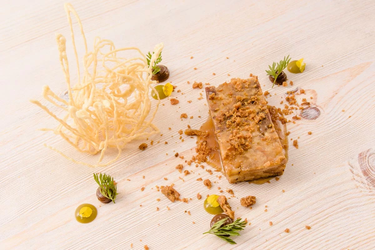 Presentaciones creativas con productos leoneses: arroz meloso de hongos, lingote de cochinillo segoviano, tartar de salmón con vinagreta de encurtidos.