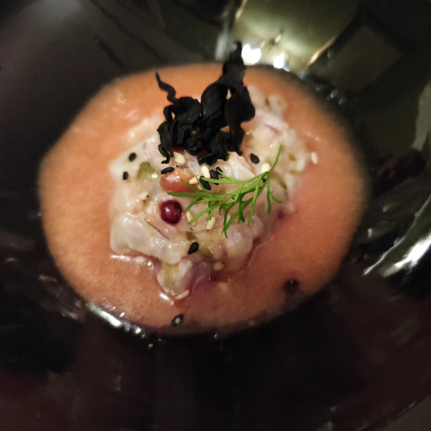 Caballa a 70º, gazpacho y tomatesMedia Ración: 11,00 EUR Ración: 20,00 EUR
