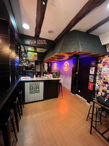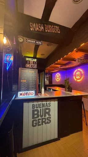 B uenas Burgers es una dark kitchen pionera en León, ubicada en la calle Misericordia, especializada en smash burgers de carne de ternera de los Valles del Esla. Su estilo informal destaca por hamburguesas jugosas, elaboradas al estilo smash, acompañadas de patatas caseras y bebidas. Abren solo para entrega y recogida, siendo muy populares entre jóvenes y gourmets informales.