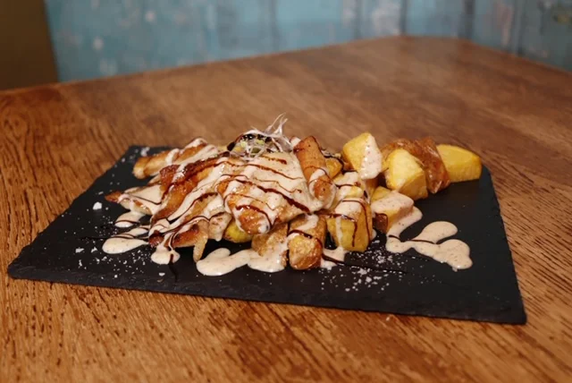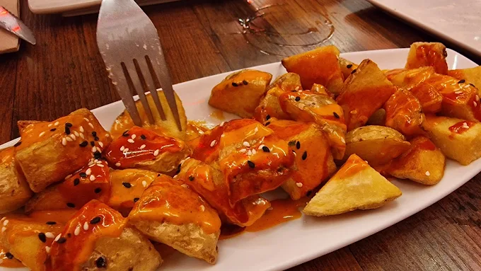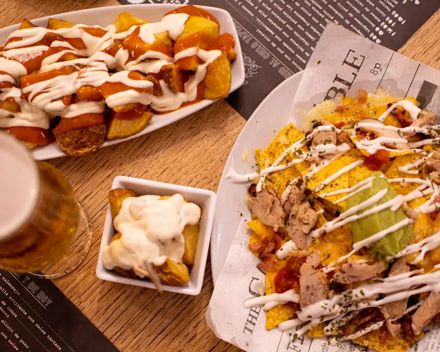 Patatas bravas (clásicas, LaLina, bravioli), tapas variadas (croquetas, tempura, pisto), cócteles y copas.