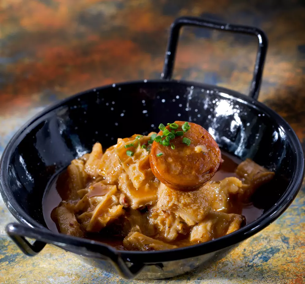Corazones de alcachofa fritos, pochas con berberechos, pichón en escabeche, fabes con setas, callos a la madrileña, menú diario con platos caseros.