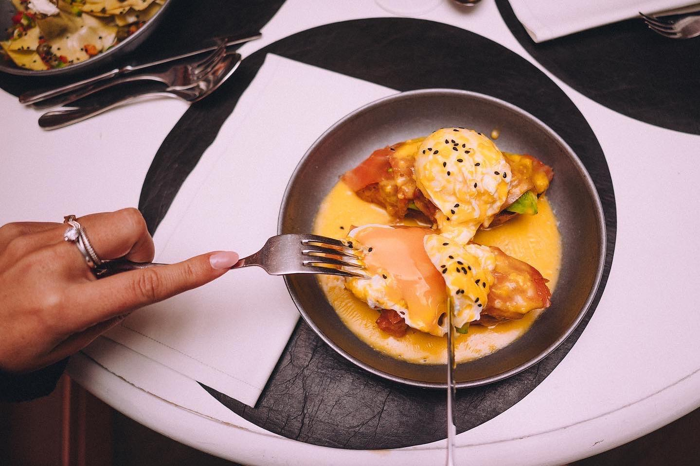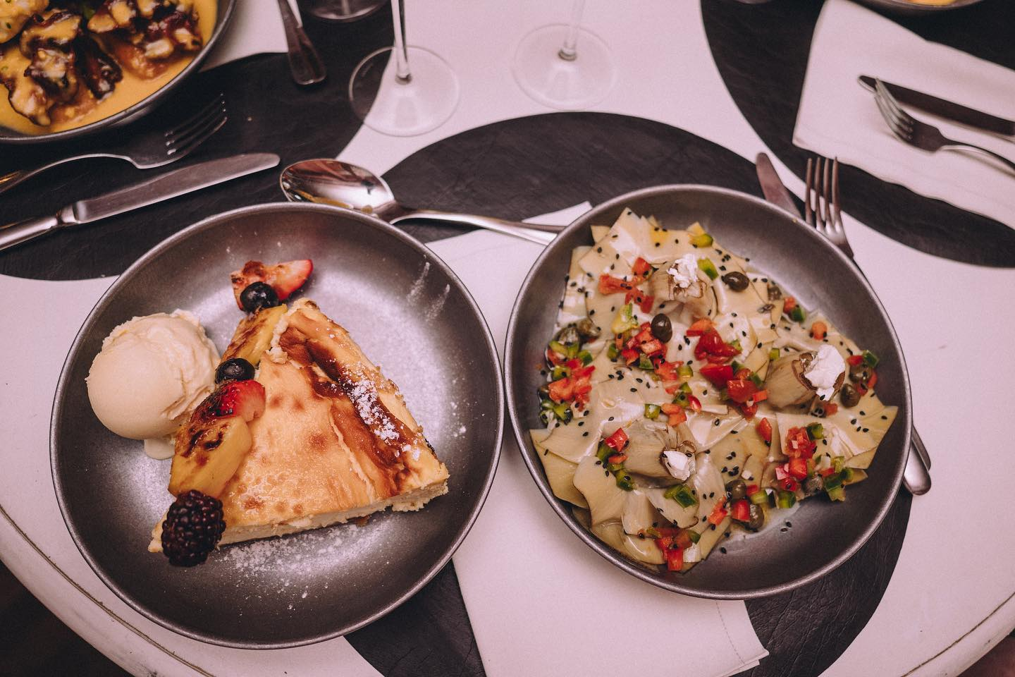 Ensaladilla rusa, chipironcitos al ajillo, huevos rotos con ibérico, sándwich cachopo, croquetas variadas, pulpo a la brasa, hamburguesa Ponzano, torrija de croissant.