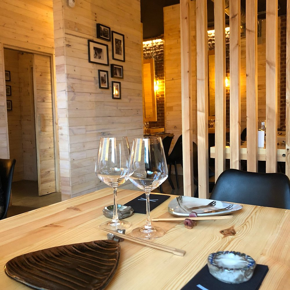 Aguacate tempurizado en panko, triguero tempurizado, shiitake encurtido cubierto de sashimi de buey sopleteado, cubierto de salsa anguila, mayotrufa y ahumado. Puede contener trazas de lácteos, pescado, cacahuetes, frutos de cáscara, apio, crustáceos y mol.