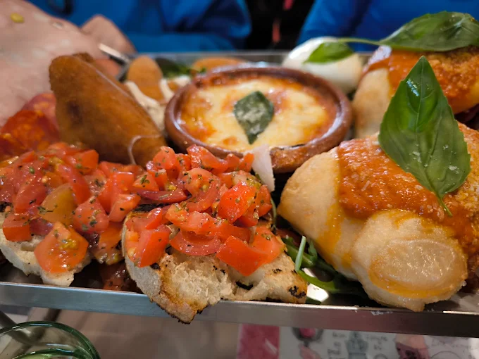 Pizzas napolitanas clásicas (Margarita, Fantástica, La Ghiottona); pasta fresca como linguine A’Pugliese, risotto Speck y Zucchine; entrantes como cuoppo o ravioli trufados.