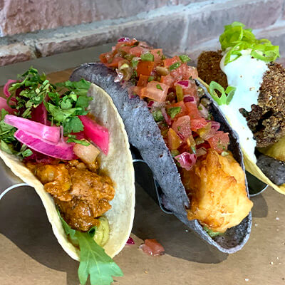 Solomillo de cerdo a baja temperatura; fideos tostados; flamenquines; ensaladilla rusa; lagrimitas de pollo con salsa de vainilla; tacos estilo internacional; tartar de atún; costillas de cerdo glaseadas.