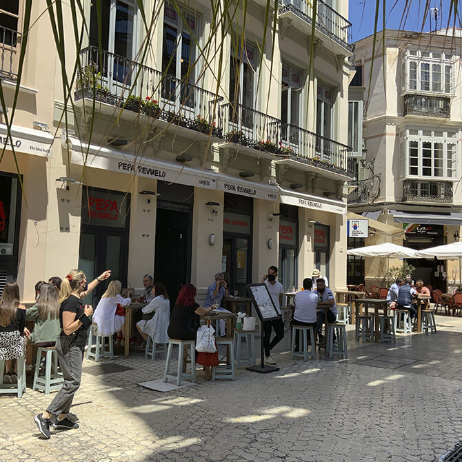 P epa Revuelo Centro es un restaurante-bar moderno y vivo situado en la calle Granada del corazón del centro histórico de Málaga. Ofrece una carta variada que combina cocina española con toques internacionales y street food creativa. El ambiente es informal pero cuidado, ideal para compartir tapas con amigos, disfrutar de cocktails o raciones de calidad en un entorno céntrico y animado. El servicio es profesional y atento, con un fuerte enfoque en la experiencia del cliente.