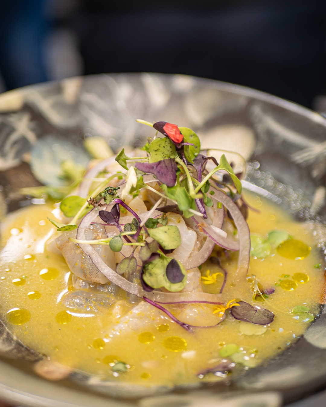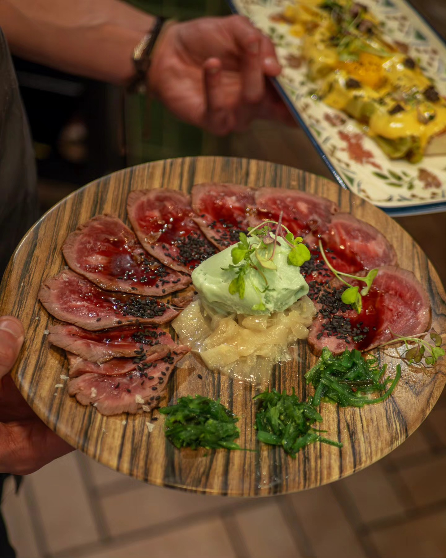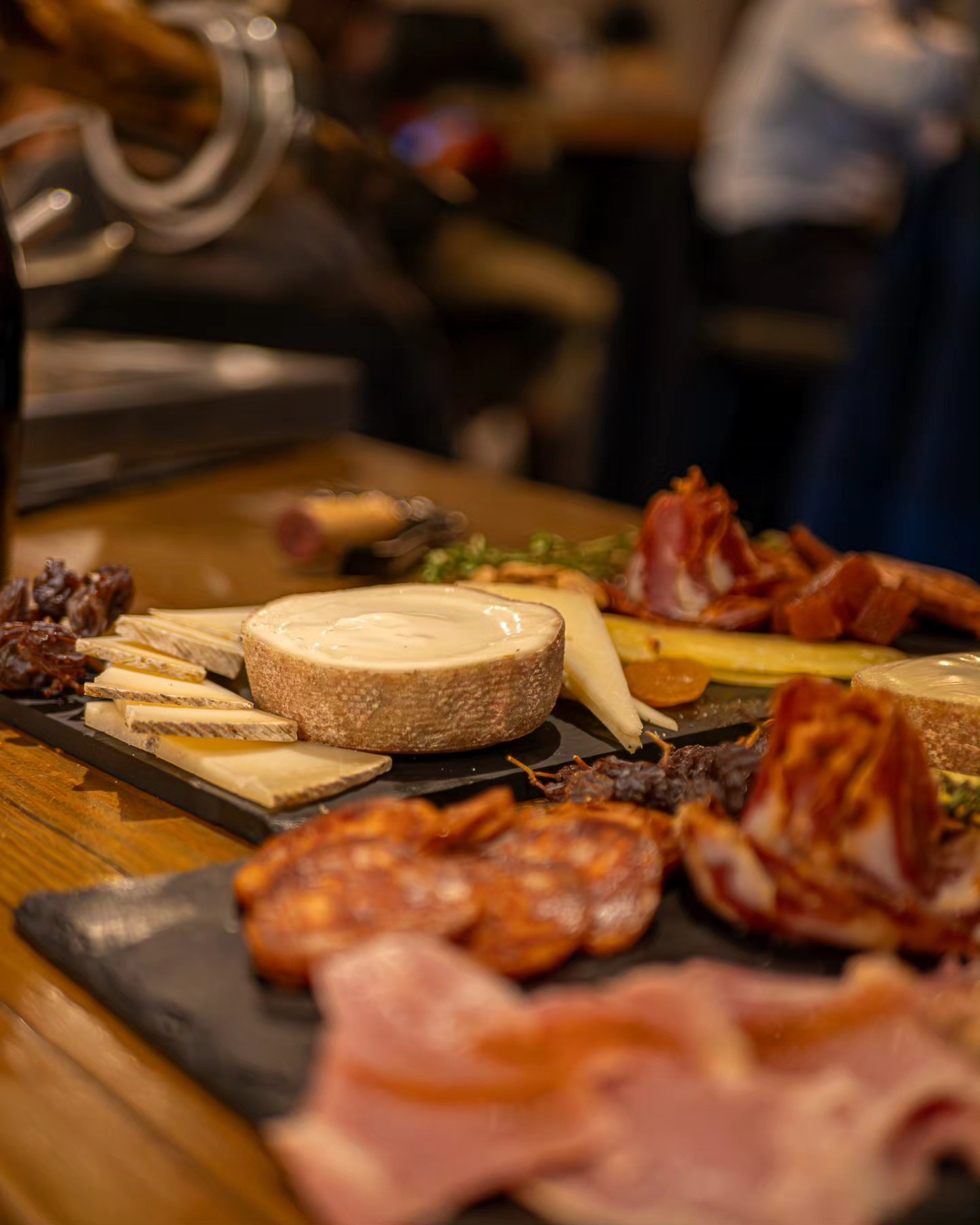 Tablas a medida de jamón ibérico de bellota y quesos artesanales nacionales e internacionales, carrillada ibérica con trufa, chivo lechal de Málaga, ensaladas y ceviches con toque contemporáneo.