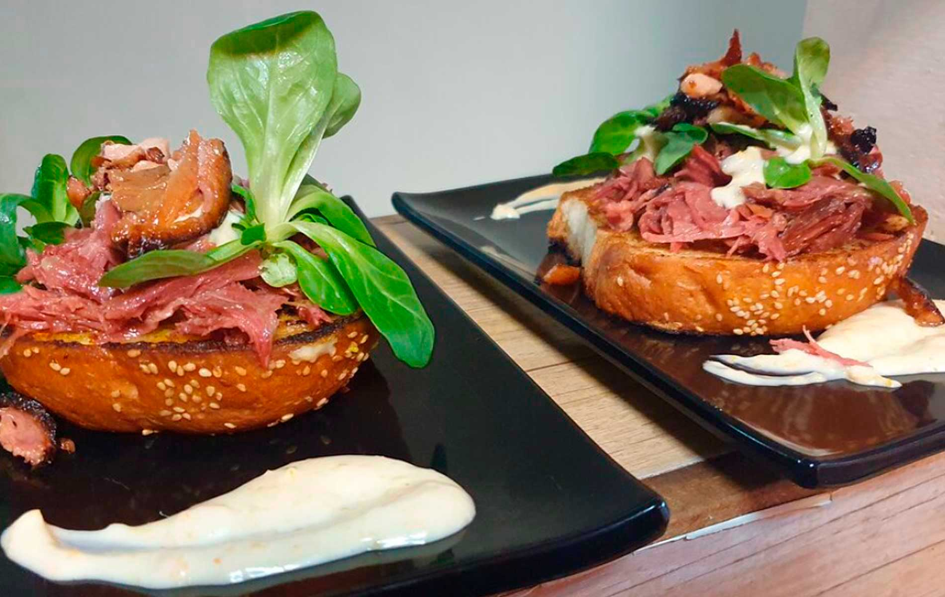 Ensaladilla rusa casera, croquetas de jamón ibérico, tataki de solomillo, bao de solomillo, hamburguesitas gourmet, tártar de salmón, salmorejo con jamón y pan cristal