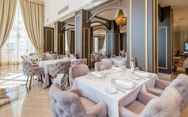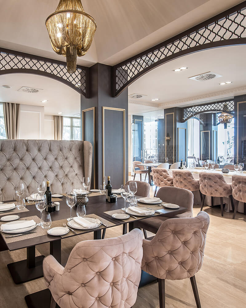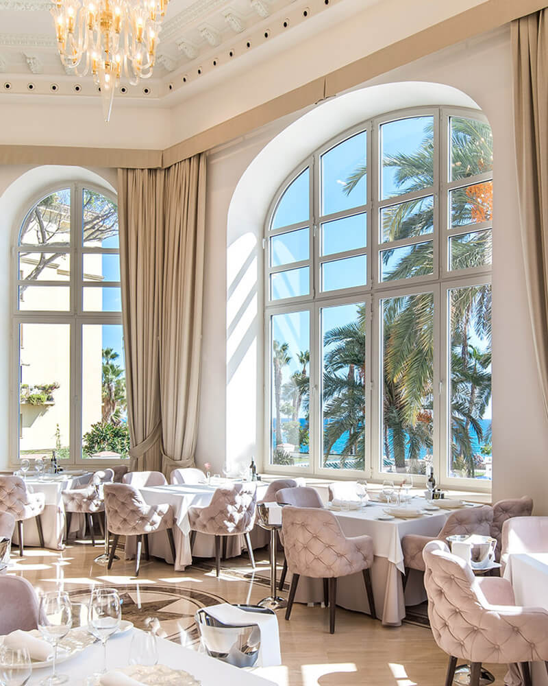 E ste restaurante de alto nivel se encuentra en la primera planta del emblemático Gran Hotel Miramar y ofrece una experiencia gastronómica refinada con vistas al Mediterráneo. El chef Diego Nicás elabora un menú temporal basado en productos de temporada y de proximidad, con propuestas que incluyen carnes, pescados y vegetales a la brasa y postres sofisticados. La sala, elegante y luminosa, combina ambiente clásico con detalles modernos y ventanales panorámicos que inundan de luz el espacio y emanan tranquilidad.