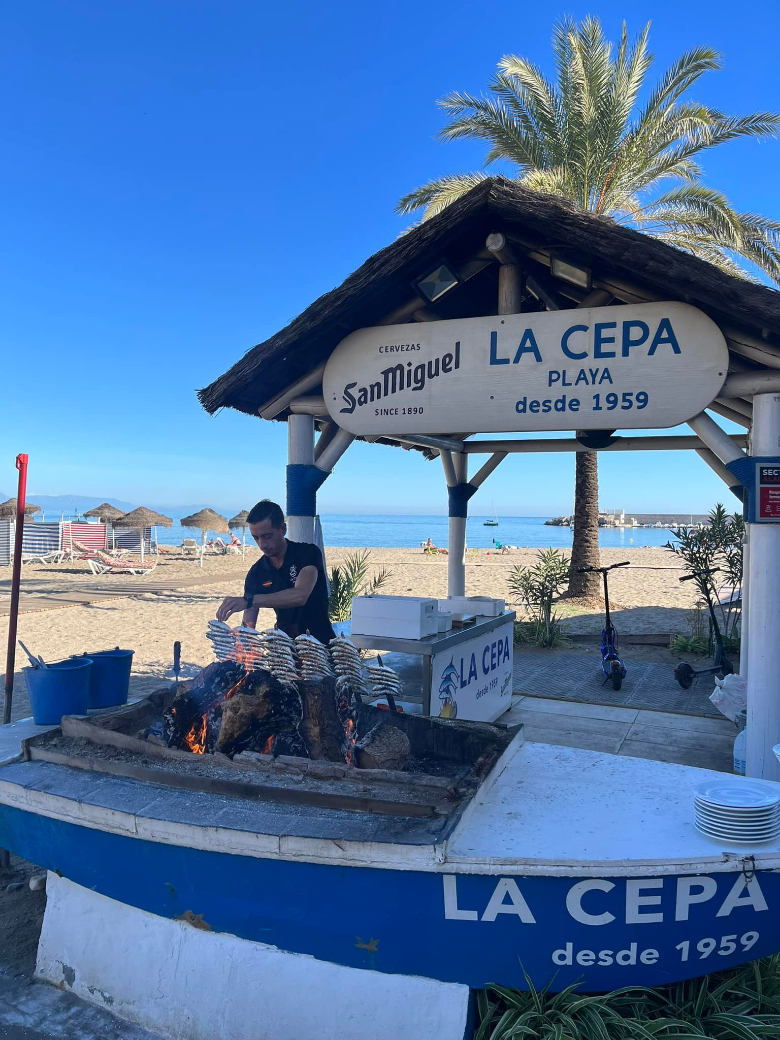 Espetos de sardinas, boquerones fritos al limón, paellas y fritura de pescado