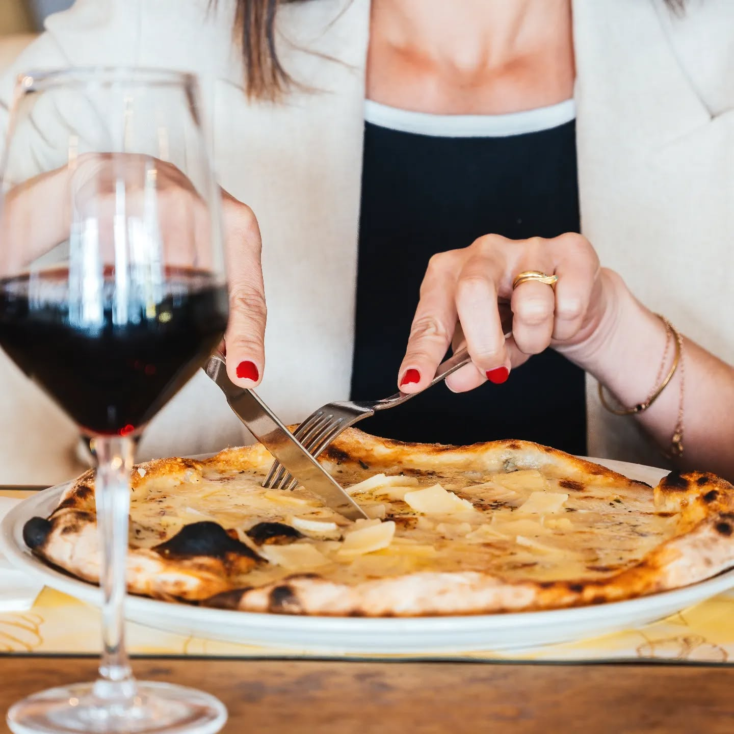 Pizza y la indulgente carbonara pizza), pasta fresca como raviolacci ricotta e spinaci, frutti di mare que puede servirse con tagliatelle, y postres clásicos como tiramisú.