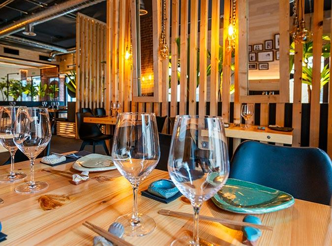 Sushi variado (maki, nigiri, flamed rolls), Bao tempurizado, Gyozas innovación, noodles y ensaladas wakame.