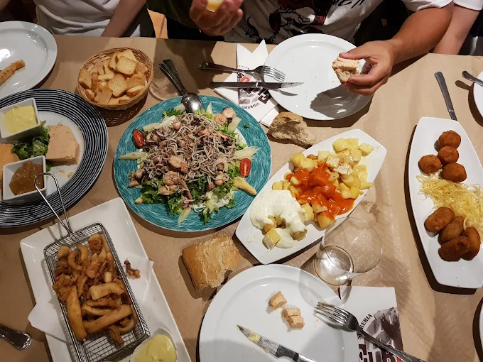Carne a la parrilla (ternera, chuletón), pulpo o gallego, chipirones, costillas, raciones de quesos y embutidos asturianos.
