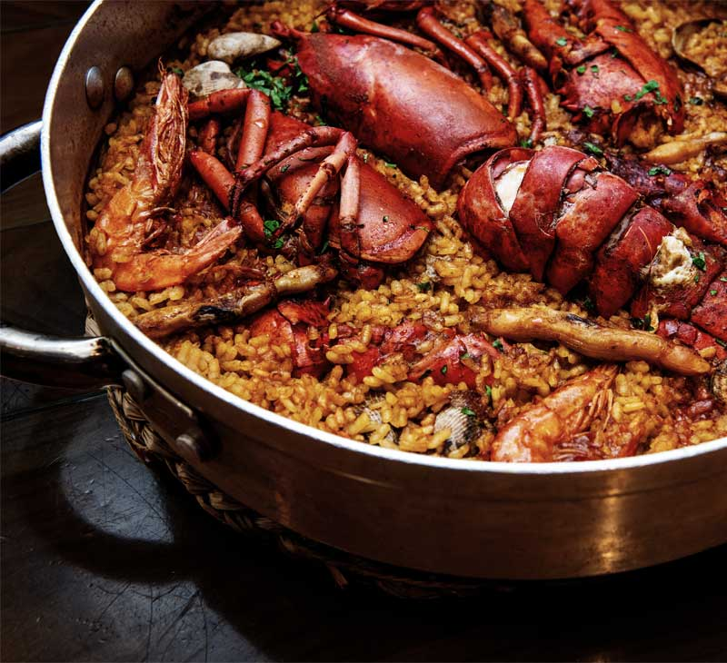 Arroces de marisco al centro, croquetas de sepia en su tinta, entrecot de novilla asturiana con pimientos confitados.